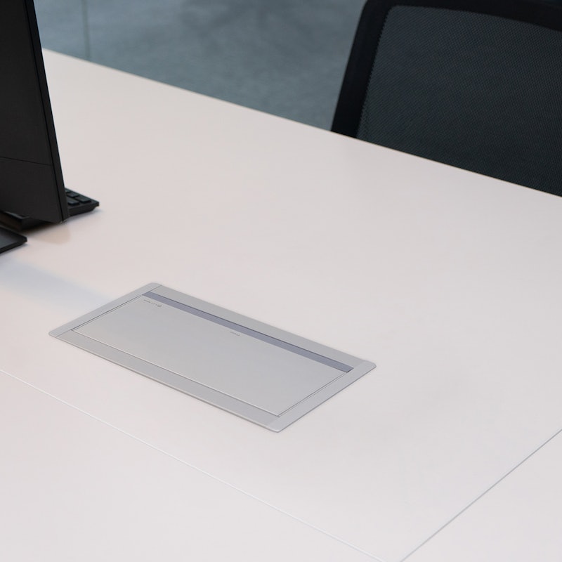 The outlets are positioned below the table surface and work best with tabletops with a minimum thickness of 10mm. Self-contained and simple to install, the unit is available in customisable lengths and can accommodate the entire portfolio of A. & H. Meyer’s outlets.