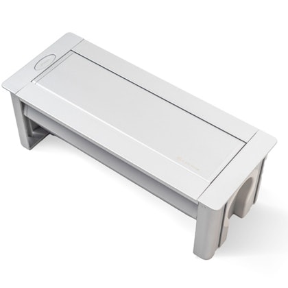 NETBOX Turn Comfort permits access from any angle, rendering them highly flexible solutions. As the cables run underneath the table, its sleek appearance is further enhanced, especially in table tops with a minimum thickness of 10mm and is available in customizable lengths.