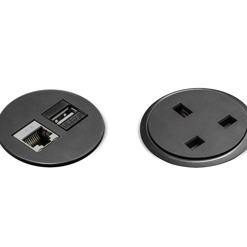 Featuring an understated minimalistic design and a diameter of just 50mm, the NETBOX Spot will suit all types of furniture and interior styles. It is installed by means of screws mounted from below, and can also be embellished with a grommet ring.